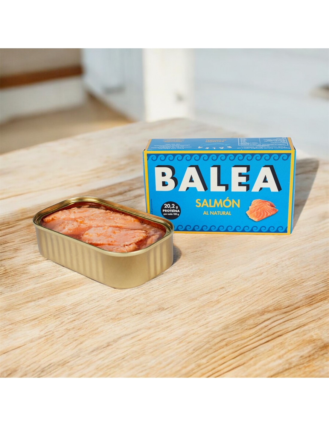 Delicioso salmón en conserva al natural, listo para disfrutar. Su cuidada elaboración mantiene intactas sus propiedades, destacando su alto contenido en proteínas. Perfecto para enriquecer tus recetas y llevar una alimentación equilibrada.